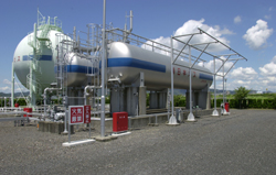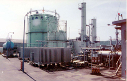 Kagoshima prefecture in 1966. Since the foundation of the company, we have been committed to the security of safety and technology development and also contributed to the development of community as well as the urbanization through the stable supply of gas to the community. Afterward, the imported LNG has become to be used as a main raw material of town gas having over 10,000kcal/m3. Along with the shift of raw material to LNG, the request of high calorie gas has risen among our customers. However it was very difficult for the local town gas suppliers like us to get LNG at the economical price and on the stable supplying base. Under the background of such situation, MK 13A Propane-air Town-gas Manufacturing Process that can manufacture town gas having over 10,000kcal/m3 was developed by ourselves and immediately constructed as a commercial plant at Sendai Factory. The calorie of the gas supplied has been 15,000kcal/m3 since the start of operation of MK 13A Propane-air Town-gas Manufacturing Process. We are currently supplying town-gas to approximately 9.000 customers. In 1996, the second plant of MK 13A Propane-air Town-gas Manufacturing process was constructed at our grass-roots Factory to supply a high calorie gas having15,000kcal/m3 to over 5,000 households and establishments in Kokubu area of Kirishima city, Kagoshima. Both plants are successfully on stream without any big trouble or accident. |