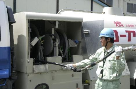 Taking out liquid hose from reel