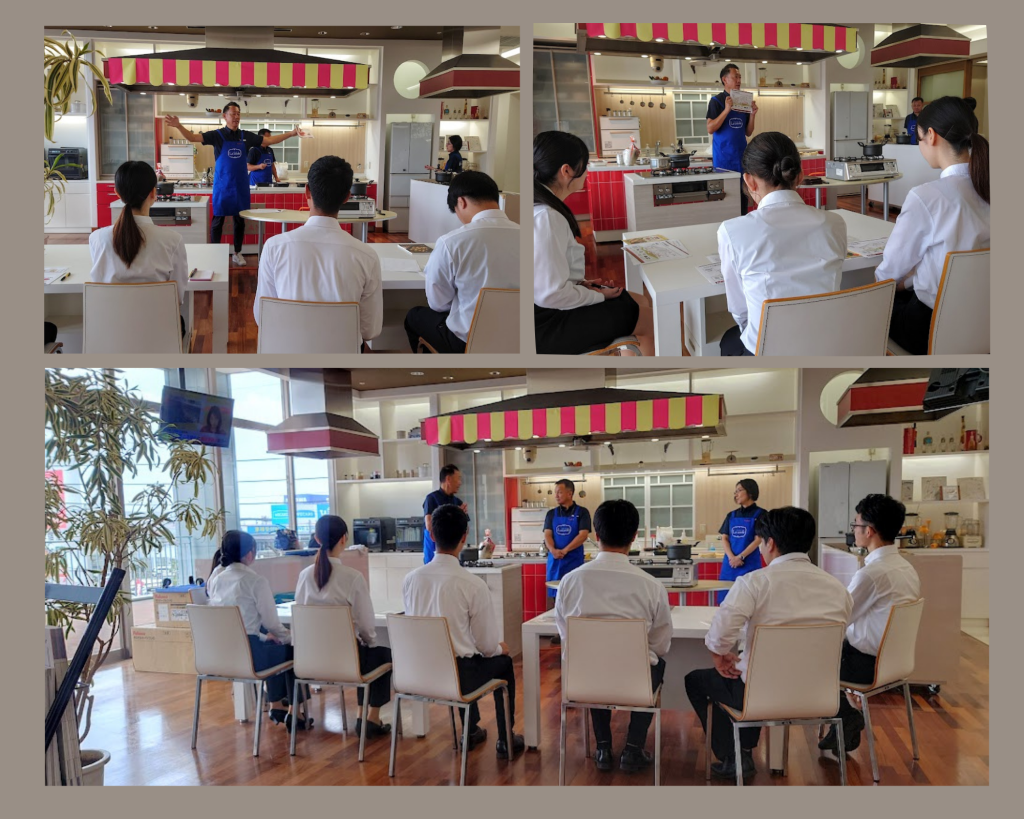 今回は特別に、株式会社パロマ 鹿児島営業所様にご協力いただき、ガスコンロの実機を使用した調理実演を実施🍳一部の社員と内定者が一緒にテーブルを囲み、笑顔と会話があふれるひとときとなりました☺