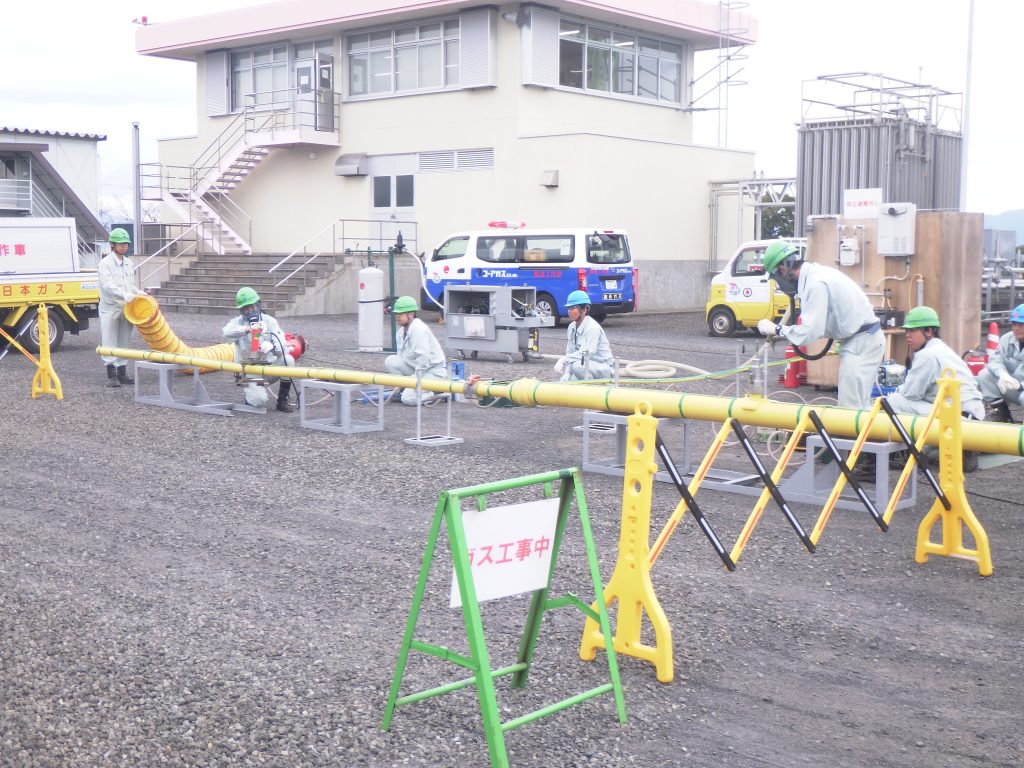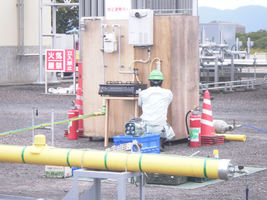 移動式発生装置を用い、避難所への都市ガス供給を想定した設置訓練を実施しました。