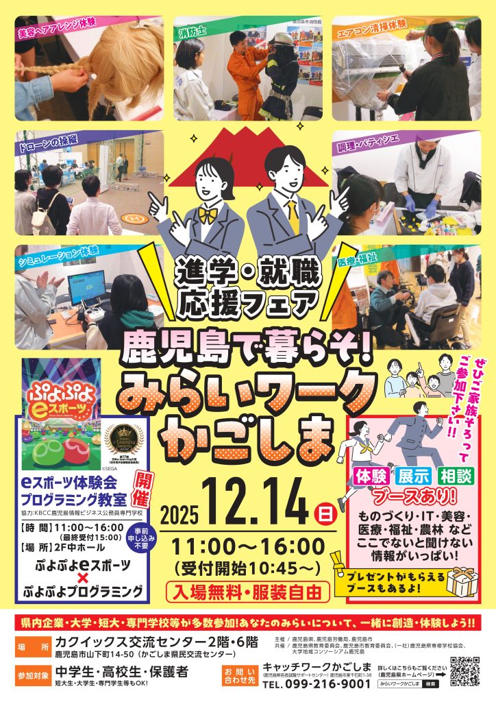 詳細はコチラ➡鹿児島県/【参加者募集中!】鹿児島で暮らそ!進学・就職応援フェア「みらいワークかごしま」