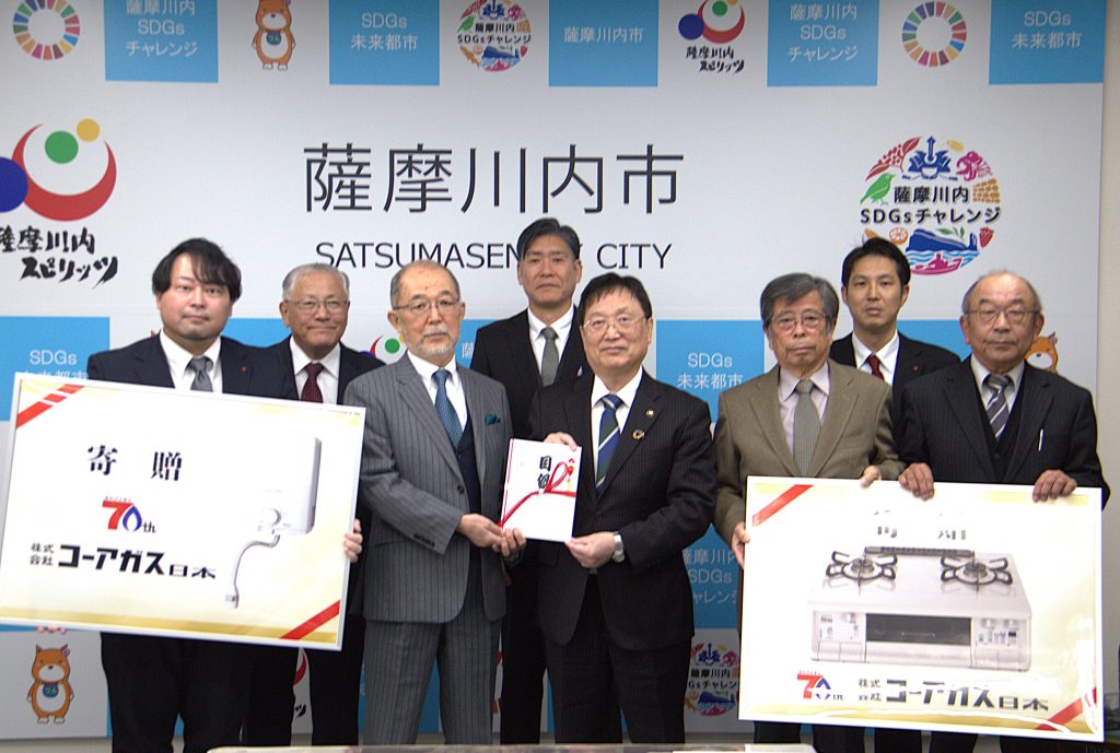このたび、創立70周年事業の一環として、薩摩川内市、旭町公民館、柿木公民館ならびに鳥追自治会へガス器具(テーブルコンロ等)を寄贈させていただきました。